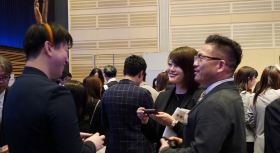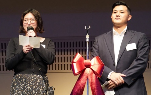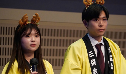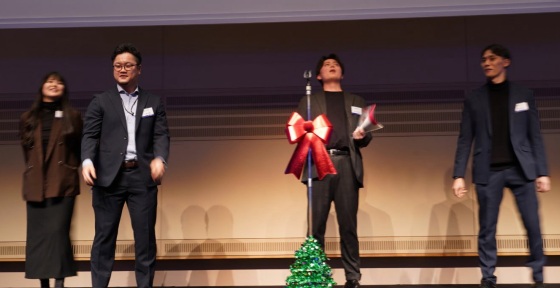 歓談の後は、恒例の企業 PR 大会の始まりです。計 13 社*の代表の皆さまが、各々工夫を凝らした素晴らしい企業紹介動画と共に、ユーモアあふれるプレゼンを披露、トリは三井物産デジタル・アセットマジメント株式会社の河野 泰佑(こうの たいすけ)さんによる素敵なオペラが披露され、会場が盛り上がりました。